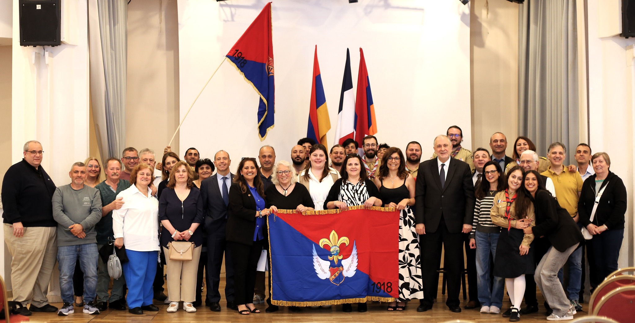 Ապա, Հ.Մ.Ը.Մ.ի Կեդրոնական Վարչութեան ատենապետ եղբ. Յակոբ Խաչերեան նորընտիր վարչութեան փոխանցեց միութեան դրօշը, եղբ. Սեւակ Թորոսեան՝ Հ.Մ.Ը.Մ.ի սկաուտութեան դրօշը, իսկ եղբ. Ֆէտի-Խաժակ Գազանճեան՝ Հ.Մ.Ը.Մ.ի կանոնագիրը։