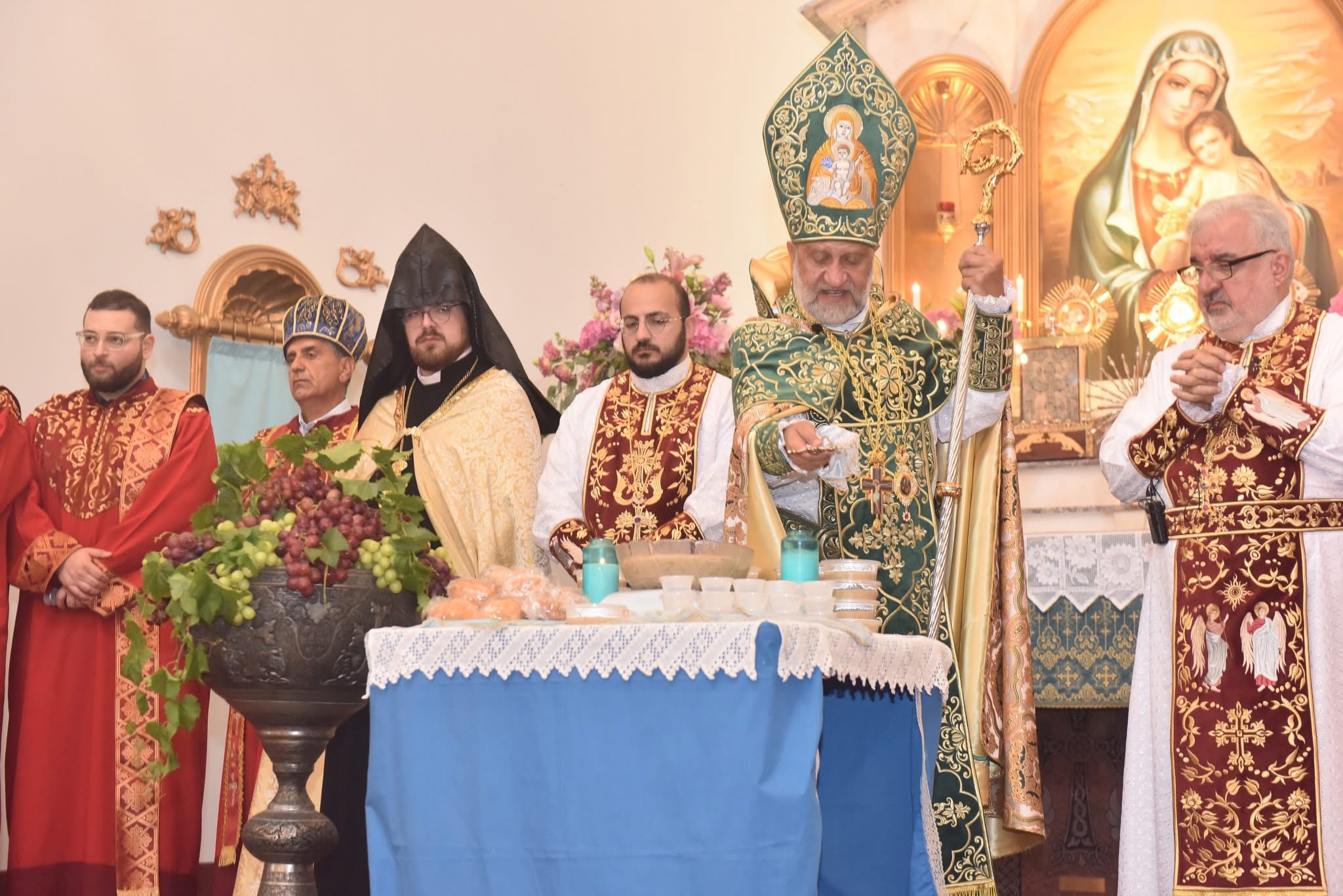 Սուրբ եւ Անմահ պատարագի աւարտին, կատարուեցաւ Խաղողի, Մատաղի եւ Ջուրի Օրհնութիւն։