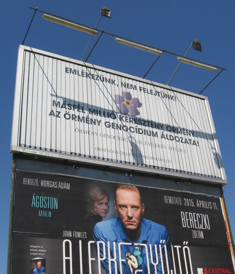 More than 40 billboards and banners dedicated to the 100-th anniversary of the Armenian Genocide have been placed in different areas and suburbs of Budapest, Hungary.