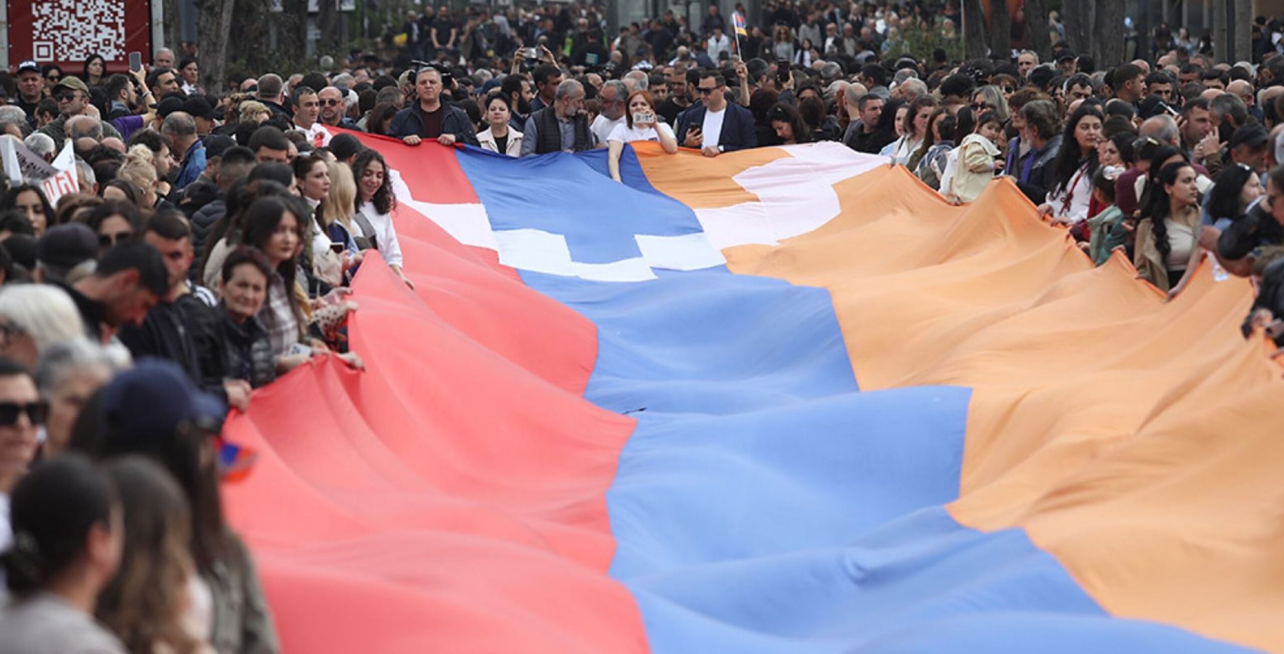 The protesters criticized recent remarks by government officials suggesting that the return of Artsakh Armenians is unrealistic and that the Artsakh issue “is closed”.
