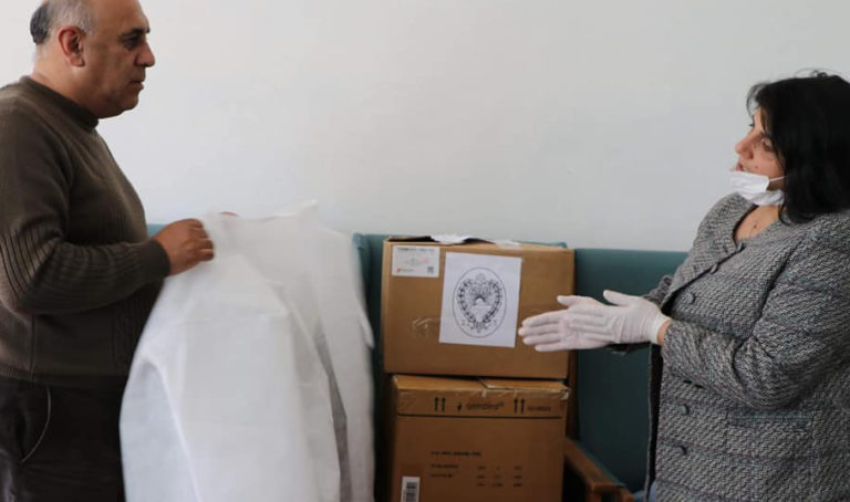 Հայ Օգնութեան Միութեան Արցախի միաւորը ապրիլ 15֊ին «Շուշիի շրջանային բուժմիաւորում》կազմակերպութեան գործադիր տնօրէն Վիգէն Խաչատրեանին յանձնած է բուժաշխտողներու համար նախատեսուած շուրջ 100 բժշկական արտահագուստ։ Բժշկական արտահագուստը պատրաստուած է՝ Արցախի Հանրապետութեան առողջապահութեան նախարարութեան հետ խորհրդակցութիւններ կատարելէ ետք։ ՀՕՄ֊ի Արցախի միաւորը կը շարունէ համաճարակի կանխարգիլման գծով իր աջակցութիւնը։