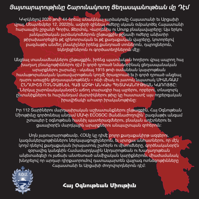 Սեպտեմբեր 22, 2022Բոլորս ալ գիտենք, որ ռազմական գործողութիւններու դադրեցման գլխաւոր դերակատարը Ռուսիան է` հակառակ տարբեր խաղերու եւ յայտարարութիւններու: Բայց նաեւ պէտք չէ թերագնահատել Ֆրանսայի թափած ճիգը` հարցը ՄԱԿ-ի խորհուրդ տանելով: Այդ եւս ողջունելի է: Մենք միշտ ալ ըսած ենք, որ գնահատելով մէկտեղ ...