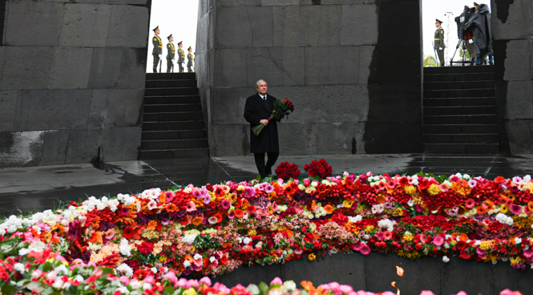 Ապրիլ 27, 2020Ցեղասպանութեան զոհերու յիշատակի օրը, Մեծ Եղեռնէն 105 տարի անց` ի նշան յիշատակի ու պահանջատիրութեան, հայ-թրքական սահմանին` պատմական Անի մայրաքաղաքի դիմաց, Շիրակի մարզի հեռաւոր Նորշէն բնակավայրի մօտ 21 մեթր բարձրութեան վրայ վեր խոյացած է 10 մեթր երկարութիւն եւ 5 մեթր բարձրութիւն ...