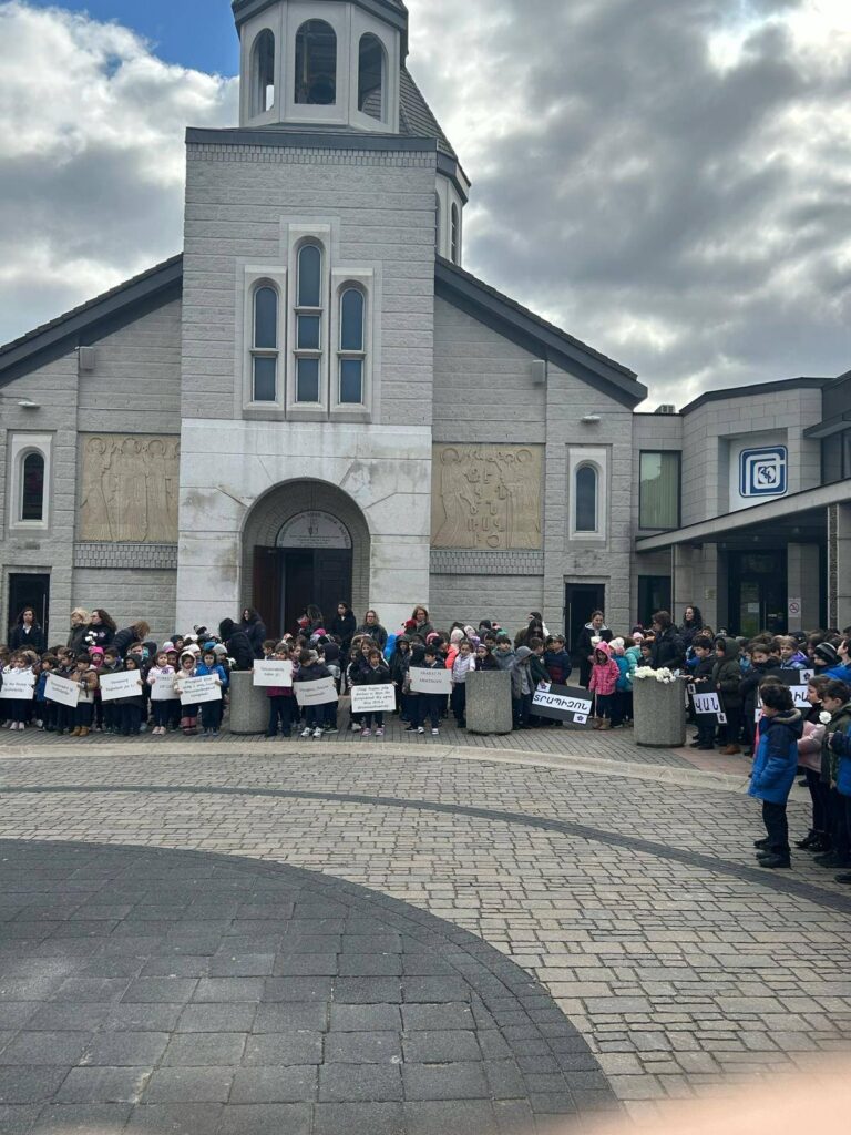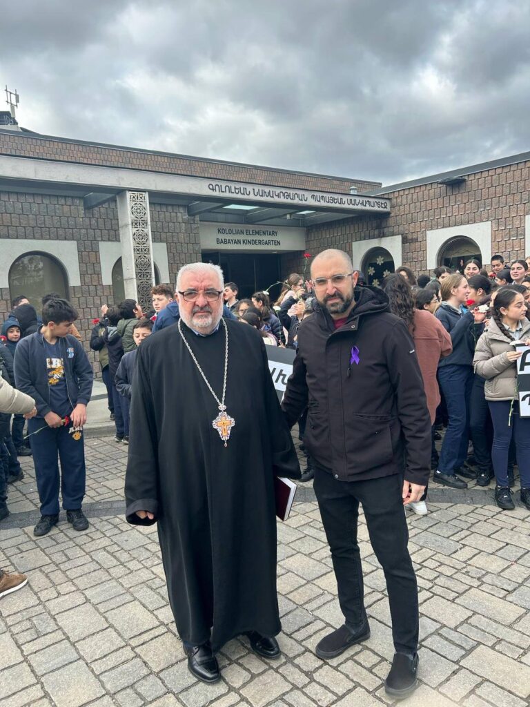 22 Ապրիլ 2025-ի առաւօտեան, Թորոնթոյի ՀՕՄ-ի ամենօրեայ վարժարանի աշակերտութիւնը, առաջնորդութեամբ տնօրէնութեան եւ ուսուցչական կազմին, համախմբուեցան Թորոնթոյի Ս. Աստուածածին եկեղեցւոյ եւ Հայ Կեդրոնի շրջափակին մէջ գտնուող Հայոց Ցեղասպանութեան Յուշարձանին դիմաց: