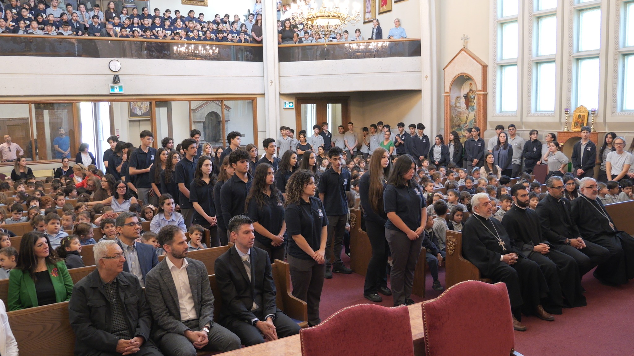 Վարժարանի Ծիլ դասարանէն մինչեւ 12-րդ կարգի աշակերտները, իրենց ուսուցիչներուն ընկերակցութեամբ, ուղղուեցան Ս. Աստուածածին Հայաստանեայց Առաքելական եկեղեցի, ուր դիմաւորուեցան թորոնթոհայ եկեղեցիներու հոգեւոր հովիւներուն եւ ներկայացուցիչներուն, վարժարանի տնօրէնութեան եւ կրթական մարմինին կողմէ: Վերամուտի պաշտօնական արարողութեան ներկայ գտնուեցան ՀՅԴ «Սողոմոն Թեհլիրեան» կոմիտէի, ՀՕՄ-ի «Ռուբինա» մասնաճիւղի եւ Շրջանային վարչութեան, Հայ Կեդրոնի յարկին տակ գործող քոյր միութիւններու եւ Ս. Աստուածածին եկեղեցւոյ հոգաբարձութեան ներկայացուցիչները: