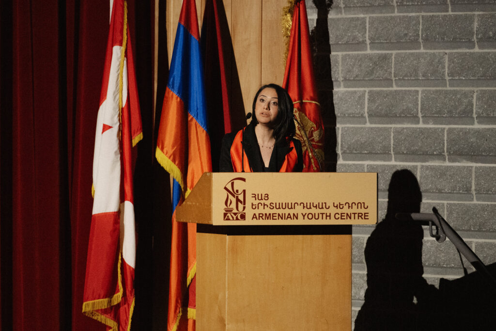 Գանատայի Երիտասարդական Միութեան ներկայացուցիչ Նարօտ Գըլըպոզեան իր խօսքին մէջ նշեց․ «Այսօր կը հաւաքուինք մեր ապագան վերահաստատելու համար։ 135 տարի առաջ հիմնուած Հայ Յեղափոխական Դաշնակցութիւնը ծնաւ իբրեւ ազգային ազատագրութեան եւ ընկերային արդարութեան կազմակերպուած կամք։ Ան անցաւ բռնութիւններու, գաղթի, վերածնունդի եւ պետականութեան կերտման ճանապարհով, բայց երբեք չկորսնցուց իր հաւատքը հայ ժողովուրդի ուժին հանդէպ։ Այդ հաւատքը այսօր մեր մէջ է՝ կերտուած ակումբ-դպրոց-եկեղեցի եռեակով․ դպրոցը՝ մեր մտքի եւ ազգային գիտակցութեան ամրոցը, ակումբը՝ մեր կամքի կոփման եւ ծառայութեան սրբավայրը, եկեղեցին՝ մեր հայ քրիստոնէական հաւատքի ազգային միջնաբերդը։ Աս երեքը միասին կը կերտեն կազմակերպուած, գիտակից եւ պայքարող երիտասարդութիւն։ Եւ այդ երիտասարդութիւնը մենք ենք»։