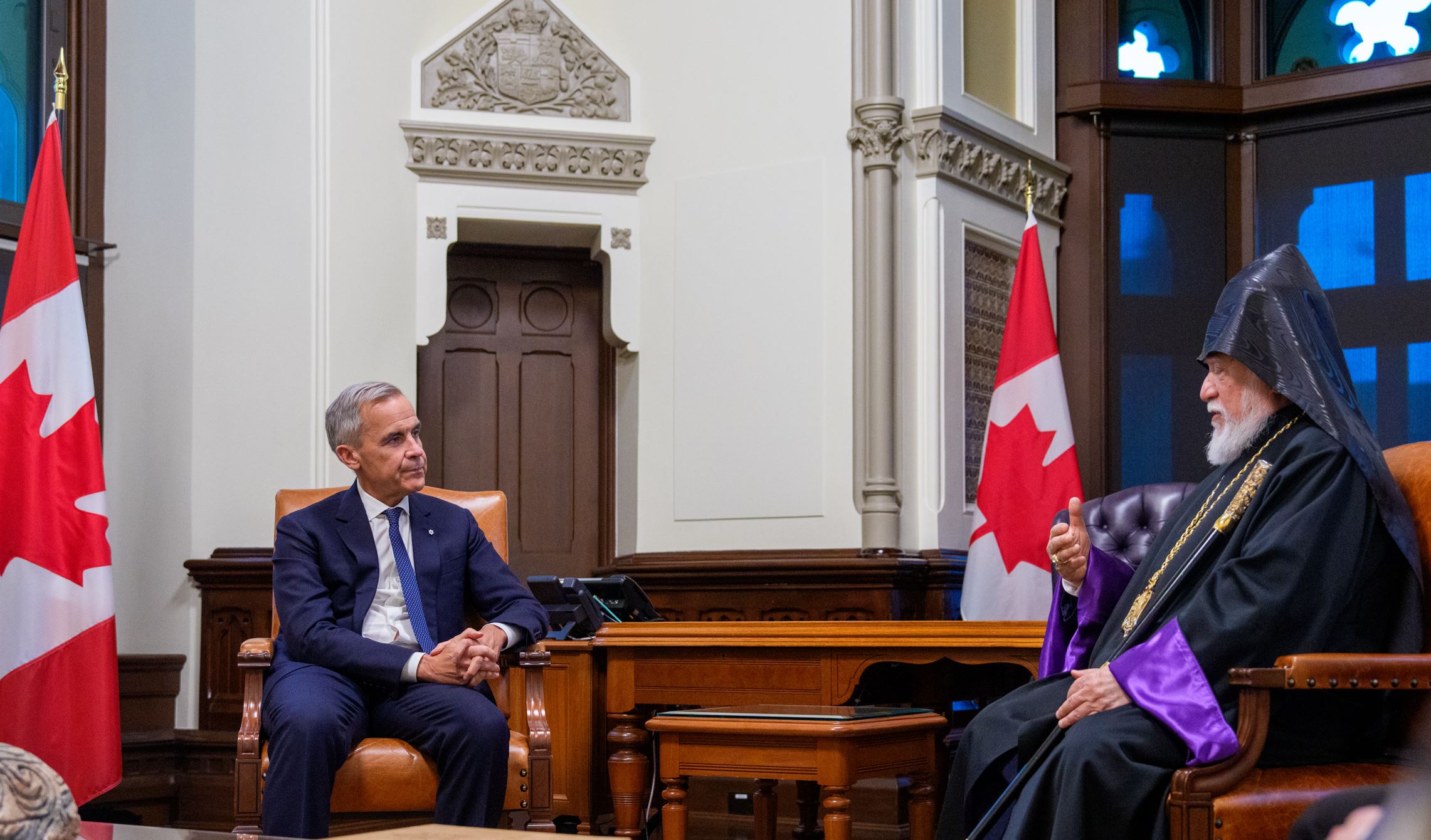 Վարչապետ Քարնին եւ Վեհափառ Հայրապետը փոխանակեցին մտքեր սոյն հրատապ նիւթերուն շուրջ՝ վերահաստատելով Գանատայի եւ հայ ժողովուրդի համատեղ յանձնառութիւնը՝ մարդկային իրաւանց, արդարութեան եւ խաղաղութեան արժէքներուն։ Հանդիպումը նշանաւորեց կարեւոր փուլ մը Գանատայի եւ գանատահայ համայնքին միջեւ շարունակուող երկխօսութեան մէջ՝ ընդգծելով այն ամուր յարաբերութիւնը, որ հիմնուած է համատեղ արժէքներու ու փոխադարձ յարգանքի հիման վրայ։