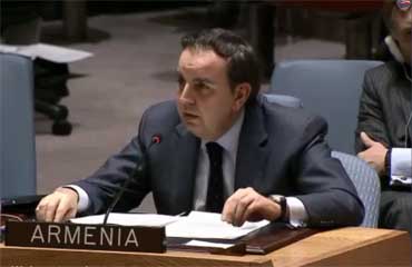 Armenia’s Ambassador Garen Nazarian, addressing the main topic of the Security Council session, ‘War, its Lessons, and the Search for a Permanent Peace,’ began his remarks with a subtle hint to Turkey on UN’s peacemaking role: “to forge a deeper reconciliation among peoples, based on a shared narrative and memory of a troubled past. Often this process entails more than simply adopting declarations and resolutions, visiting and laying down flowers at victims’ memorials or signing agreements or protocols and shaking hands. To be lasting, reconciliation may require the settling of the past, recognition and acceptance of responsibility for committed crimes.”