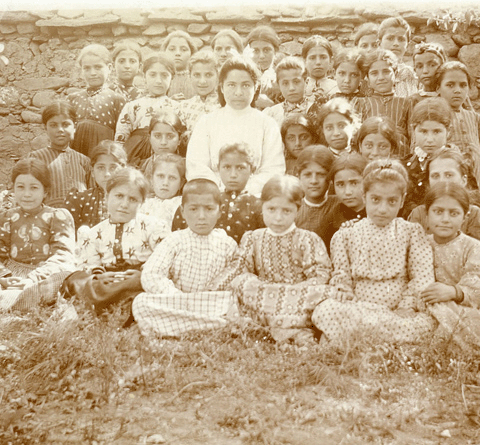 “One of the classes in the day-school in Mush with their teacher Margarid…. The teacher Margarid Nalbanchian and most of the 120 children of the day-school were murdered in 1915.”