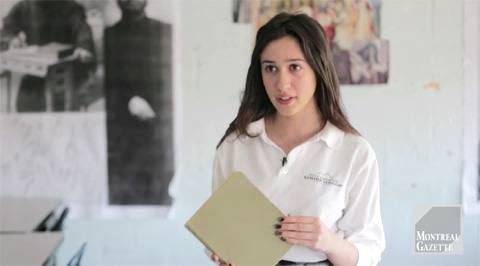 Lena Aroutunian, 16, grade 11 student at L’Ecole Arménienne Sourp Hagop, talks about the diary left behind by her great grandfather which talks about his father’s experience by the hands of Ottoman soldiers during the First World War. Video shot on April 16, 2015. (Dario Ayala / Montreal Gazette)