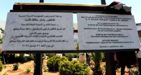 The memorial, which commemorates the Centennial of the genocide of April 24, 1915, will be built in the square next to the Armenian Orthodox Archbishopric near Bab Sharqi Arch in Old Damascus. Syriac Orthodox Patriarch of Antioch and All East Mar Ignatius Aphram II Karim, Primate of the Armenian Church of Damascus Bishop Armash Nalbandian and a number of heads of Christian denominations in Damascus took part in the cornerstone laying ceremony that witnessed a wide popular participation.