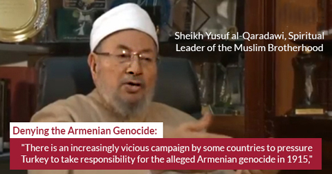 Sheikh Yusuf al-Qaradawi, the spiritual leader of the Muslim Brotherhood, backed Turkey’s refusal to acknowledge the killing of 1.5 million Armenians.