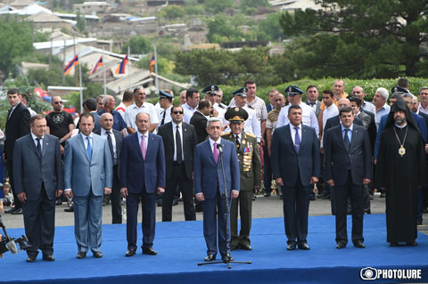 On May 28, 2015, President of the Republic of Armenia Serzh Sargsyan participated in the event dedicated to the anniversary of the First Republic of Armenia at the Sardarapat Memorial Complex with Armenia’s high-ranking officials and guests. The President laid a wreath at the monument to the heroes of the Battle of Sardarapat. President of the Republic of Armenia, Commander-in-Chief of the Armed Forces Serzh Sargsyan welcomed the participants of the military parade and congratulated everyone on First Republic Day.