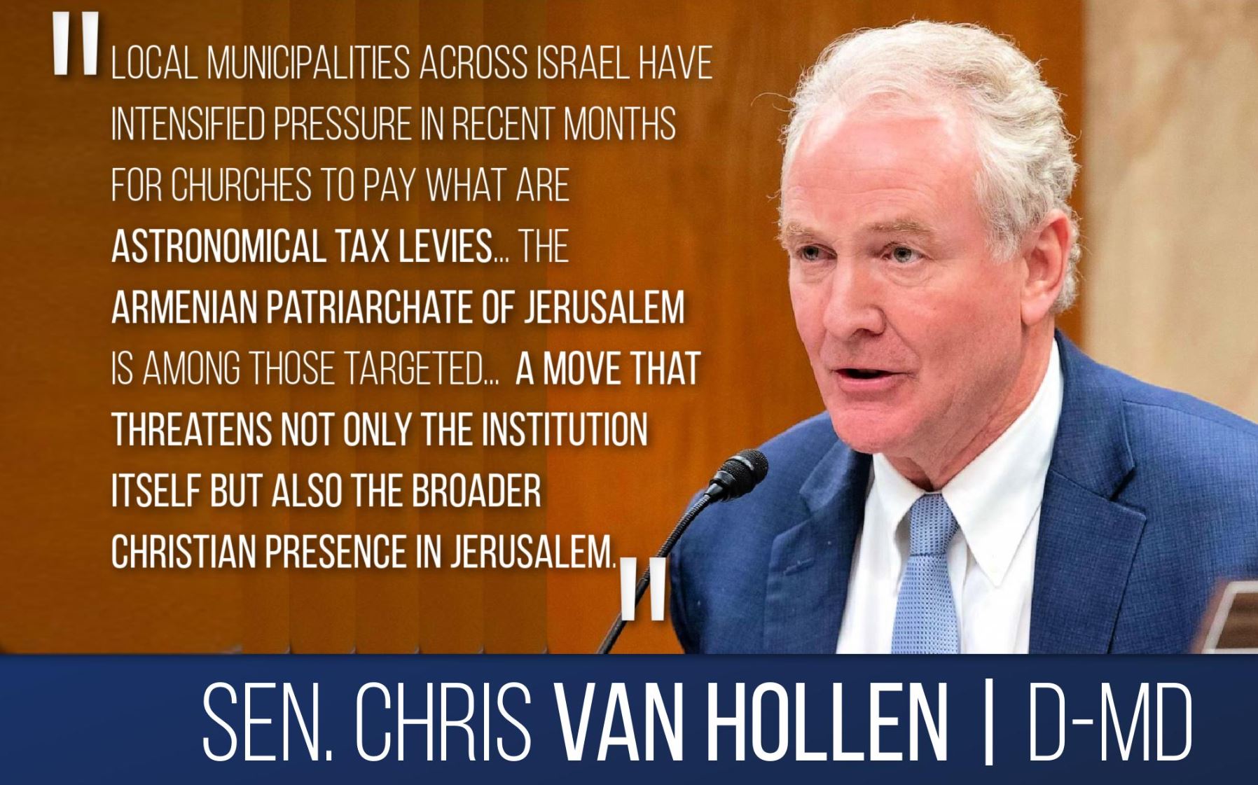 WASHINGTON – The Armenian National Committee of America welcomed U.S. Senator Chris Van Hollen’s (D-MD) strong advocacy for the Christian presence in Jerusalem, praising his recent letter to U.S. Ambassador to Israel Mike Huckabee calling for urgent American engagement to protect at-risk Christian communities—including the Armenian Apostolic, Greek Orthodox, and Latin Patriarchates.