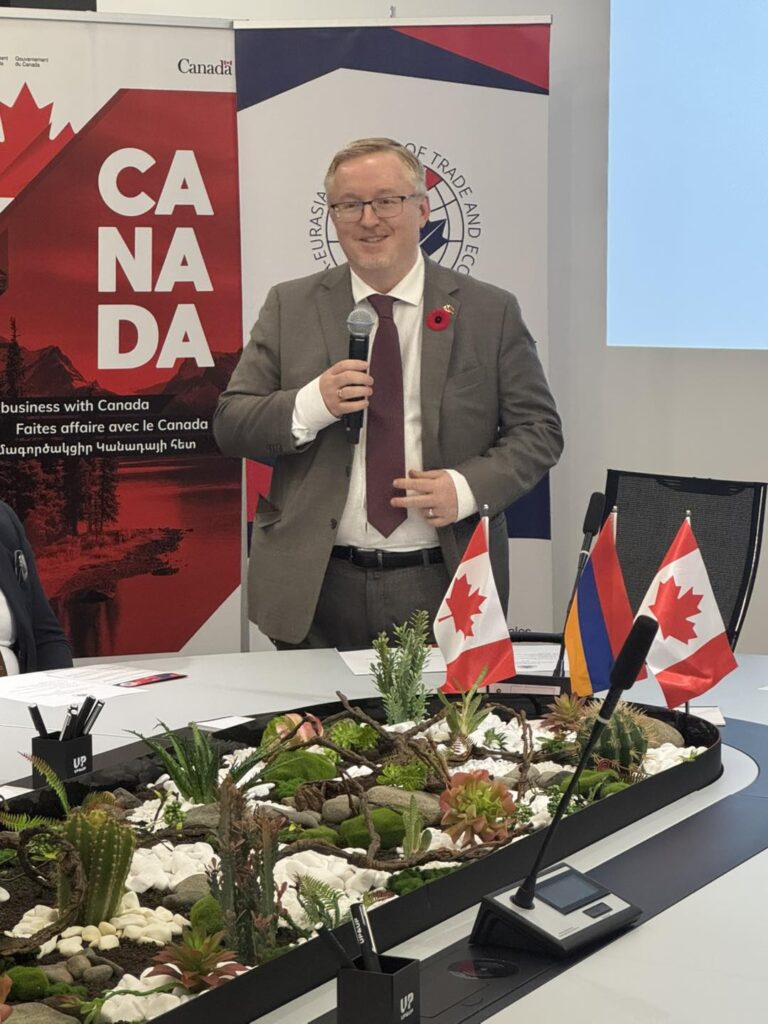 The event featured remarks by His Excellency Andrew Turner, Ambassador of Canada to Armenia, who greeted participants and underscored the importance of continued engagement. Joining virtually, Tatiana Domilovskaya, President of the Canada–Eurasia Business Alliance (CEBA), delivered a video message highlighting the Chamber’s role in advancing Armenian–Canadian relations. She also shared updates on recently completed projects and provided an overview of forthcoming initiatives.