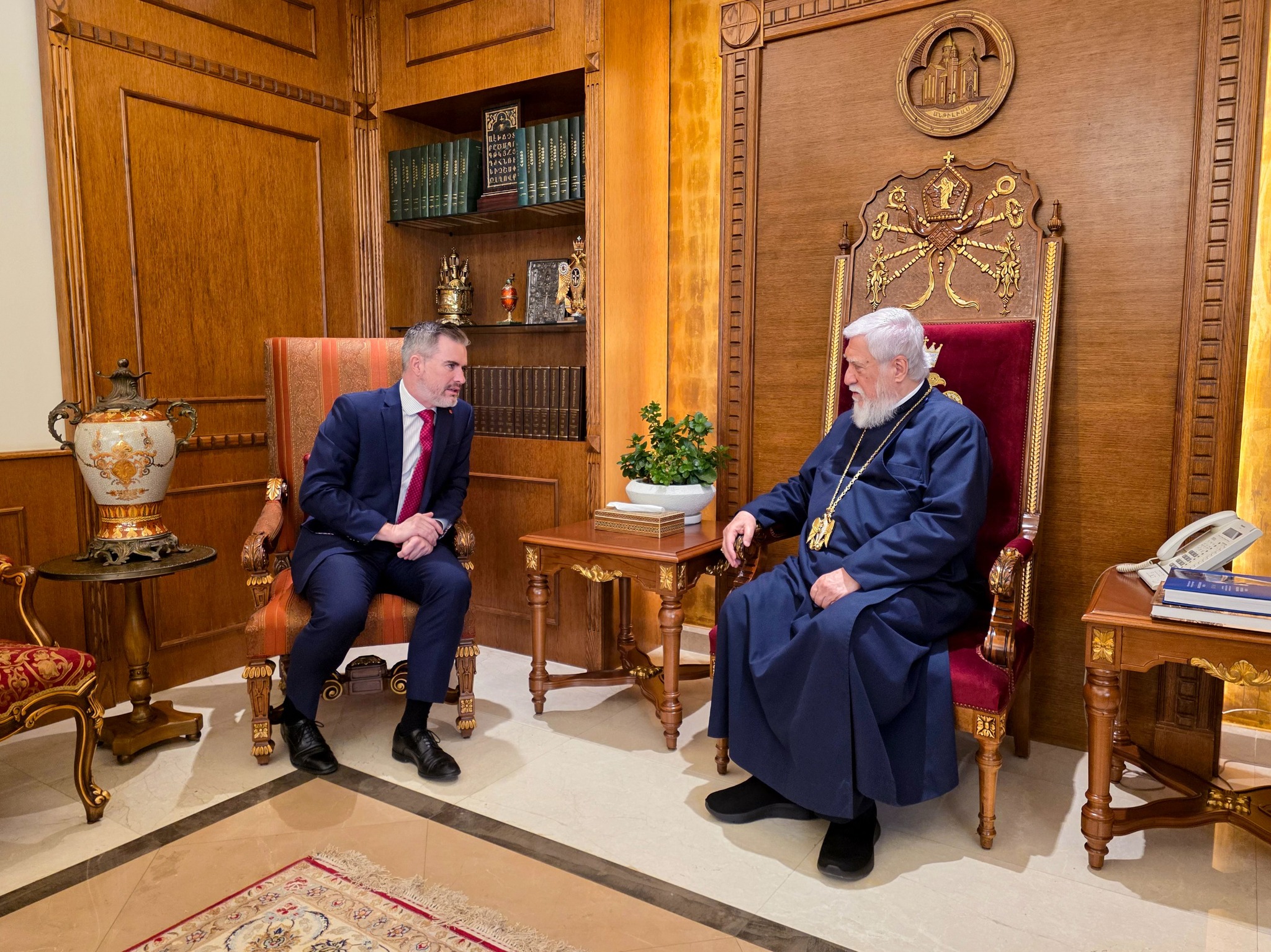 Welcoming the ambassador on the occasion of his new appointment, His Holiness outlined the pan-Armenian mission of the Catholicosate of the Great House of Cilicia, emphasizing its spiritual, national, and community-centered role, particularly in the Middle East and the Armenian Diaspora.