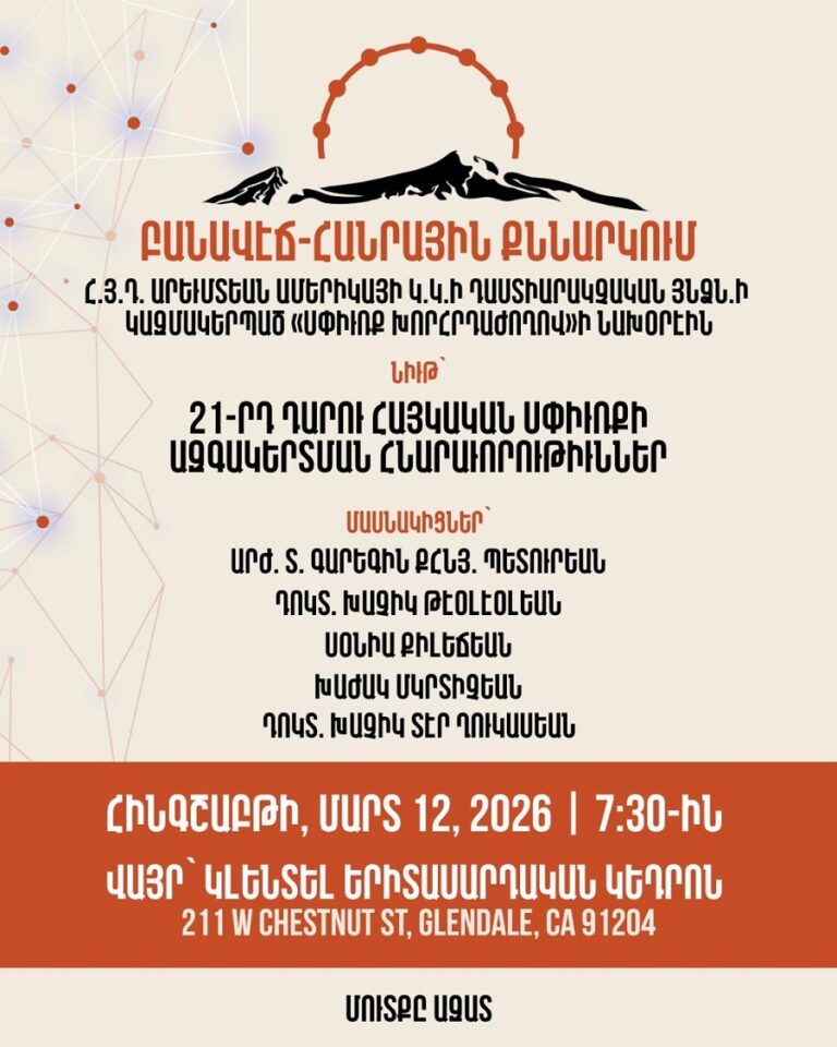 March 17, 202614էն 15 մարտի շաբաթավերջին, ՀՅԴ Արեւմտեան շրջանը Սփիւռքի հարցերուն նուիրուած իր խորհրդաժողովը գումարեց Պըրպենքի «Պեշիր Մարտիրոսեան» Երիտասարդական կեդրոնին մէջ։ Ներքին աշխատանքային խորհրդաժողովը համախմբեց Սփիւռքի նշանաւոր գիտնականներ, մանկավարժներ, համայնքային առաջնորդներ եւ ՀՅԴի անդամներ՝ համակարգուած երկխօսութեան մը համար, որ նուիրուած էր միայն մէկ ...