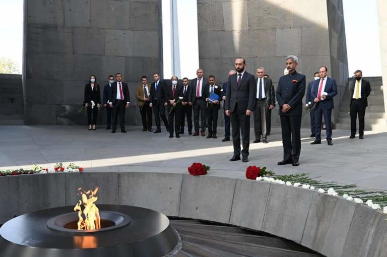 October 13, 2021Accompanied by the Foreign Minister of Armenia Ararat Mirzoyan, the Foreign Minister of India Subrahmanyam Jaishankar visited the Memorial of Armenian Genocide and paid tribute to the memory of the Genocide victims.