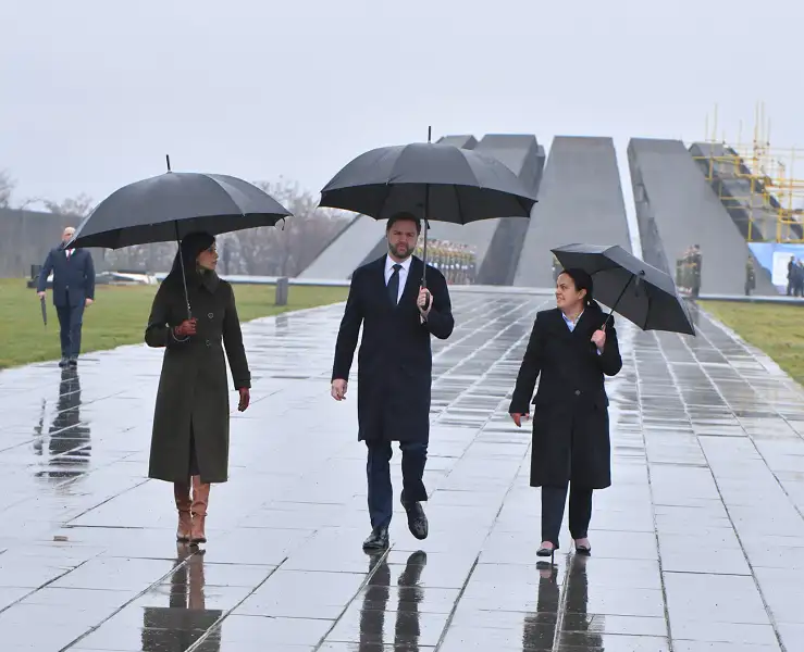 During the visit, Gzoyan reportedly showed the U.S. vice president khachkars installed at the memorial in memory of Armenians killed in the anti-Armenian pogroms in Sumgait, Kirovabad, and Baku, and also pointed to the graves of five fighters from the 1990s Karabakh war located near the memorial wall. According to reports, she drew connections between those events and the Armenian Genocide and presented Vance with books related to the Artsakh issue.
