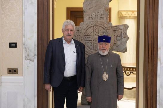 Swiss MP Erich von Tobel Discusses Rights of Displaced Artsakh Armenians with Catholicos of All Armenians